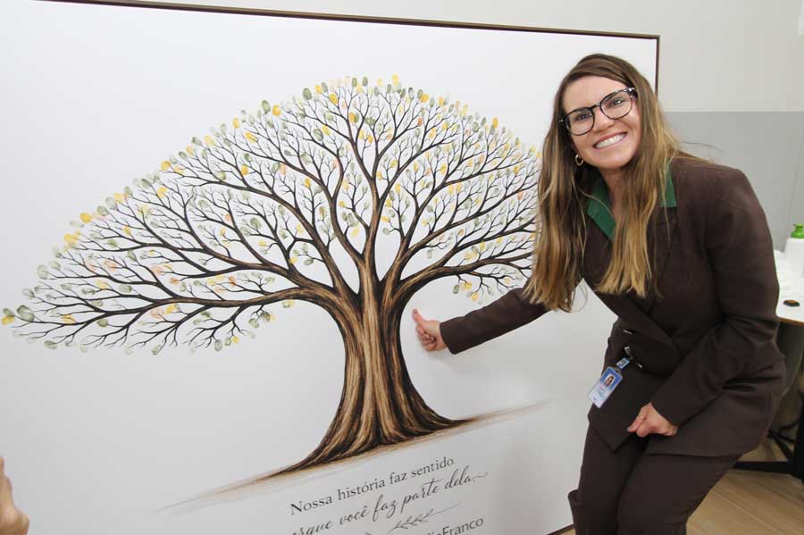 “Entrei como escriturária em 1996 e, quando a obra do hospital foi finalizada, fui promovida a secretária da gerência de enfermagem. Hoje tenho 29 anos de empresa e, em dezembro de 2026, completo 30 anos. Quando cheguei aqui, do mezanino para baixo não havia praticamente nada. Passei por momentos importantes da minha vida e tive, aqui, pessoas que me ajudaram muito. Entre elas está o Dr. Flávio.”